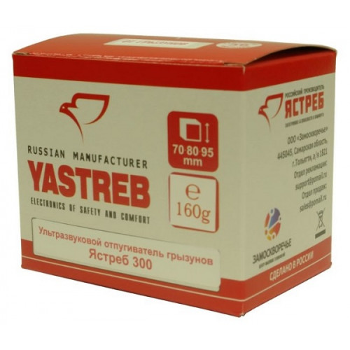 Отпугиватель "Ястреб 300" не нуждается в дополнительном обслуживании во время работы, не требует замены комплектующих или расходных материалов. Просто включите его в розетку и забудьте о нем! О работе прибора вам напомнит лишь полностью свободное от грызунов помещение.